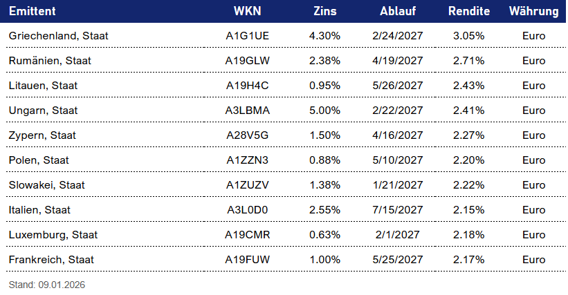 TOP 10 Euro Staatsanleihen