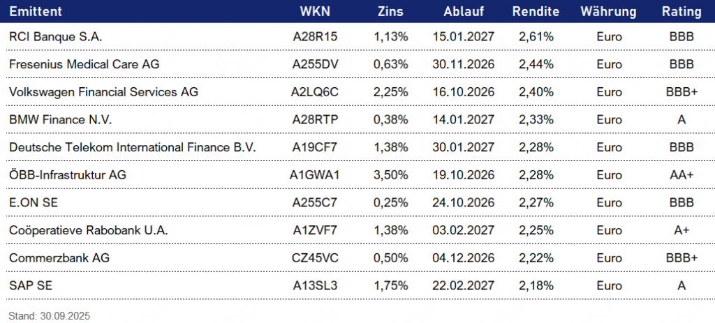 Wie bei Staatsanleihen ist die Bonität des Unternehmens, das die Anleihe ausgibt, ein wichtiger Faktor bei der Bestimmung der Rendite. Unternehmen mit einer höheren Bonität, die als finanziell stabil und kreditwürdig angesehen werden, werden in der Regel niedrigere Renditen auf ihre Anleihen bieten, während Unternehmen mit einer niedrigeren Bonität höhere Renditen bieten müssen.