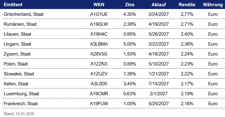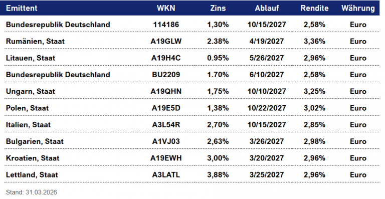 TOP 10 Euro Staatsanleihen