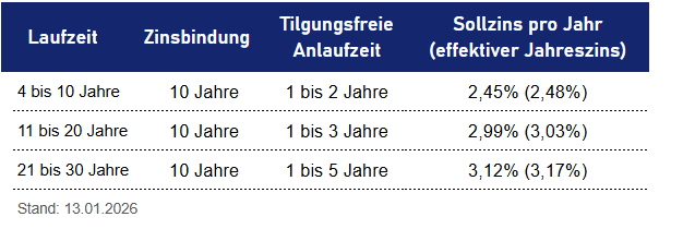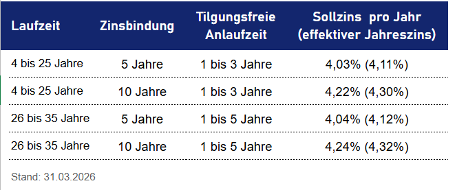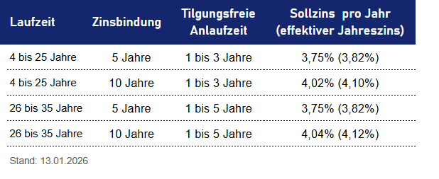 Übersicht Zinsen Förderdarlehen